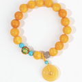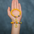 A luminous bracelet combining the golden glow of natural amber-yellow agate with serene turquoise and soft jade. Centered by a circular peace-disk charm, it carries the timeless symbolism of safety and completeness. Each polished bead reflects warmth, abundance, and the tranquil rhythm of balance within and beyond.