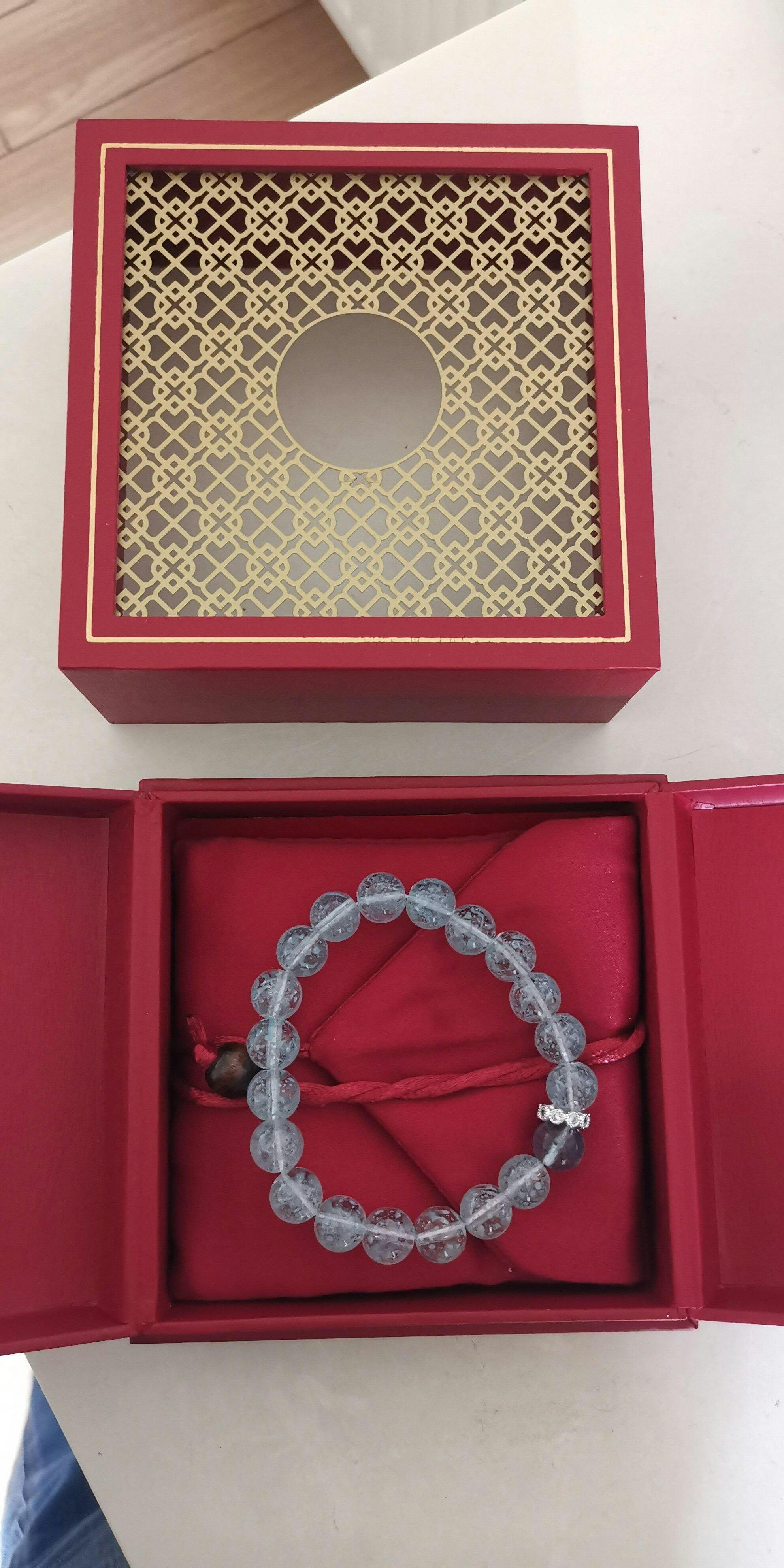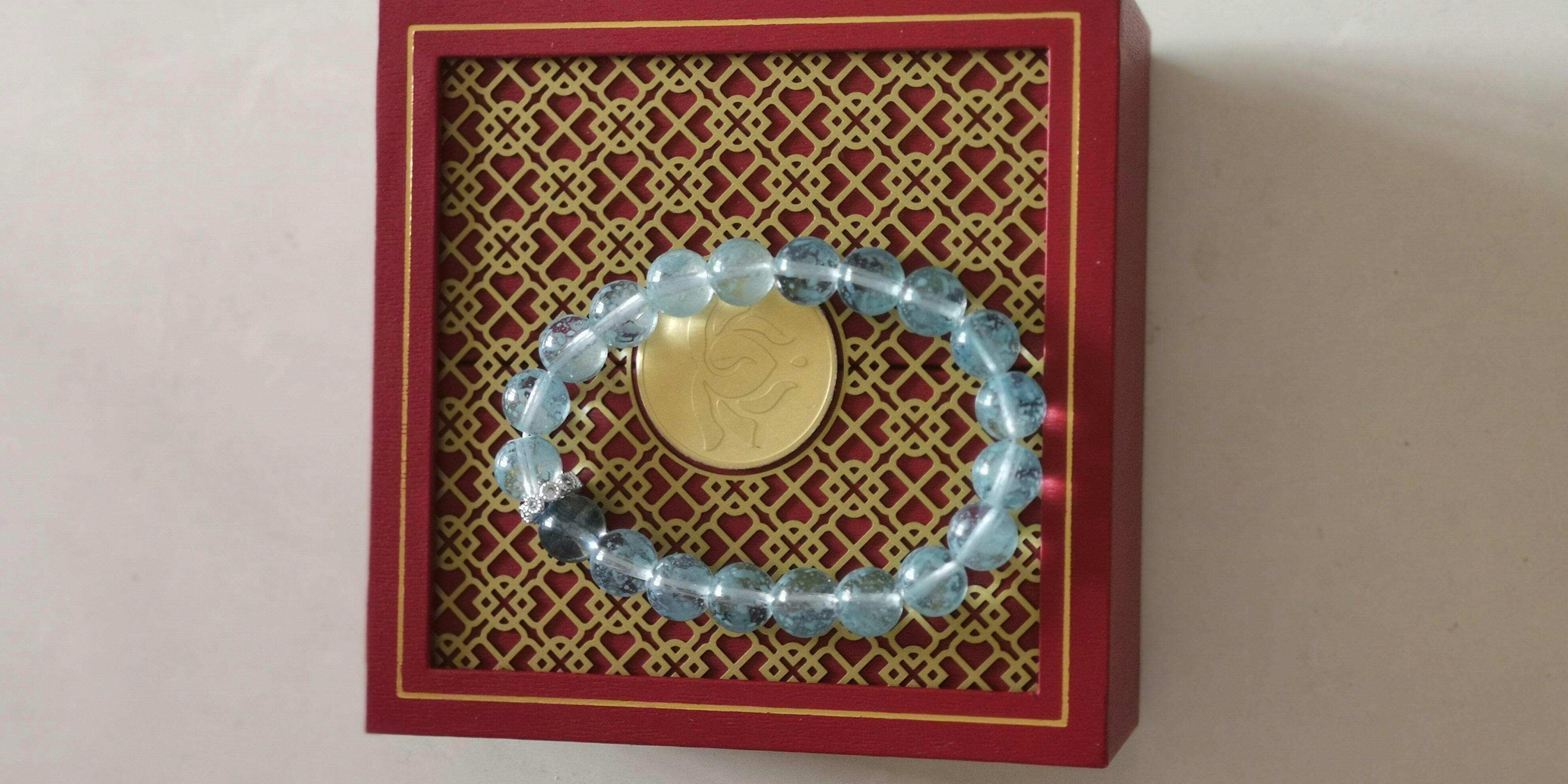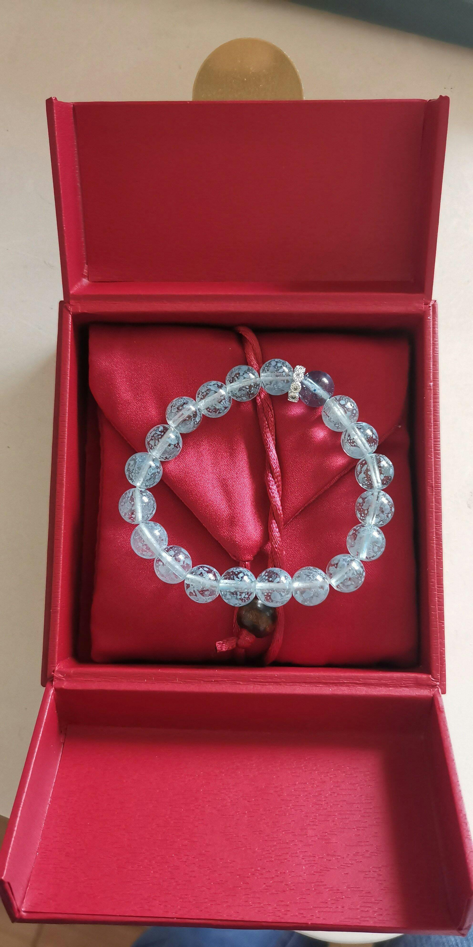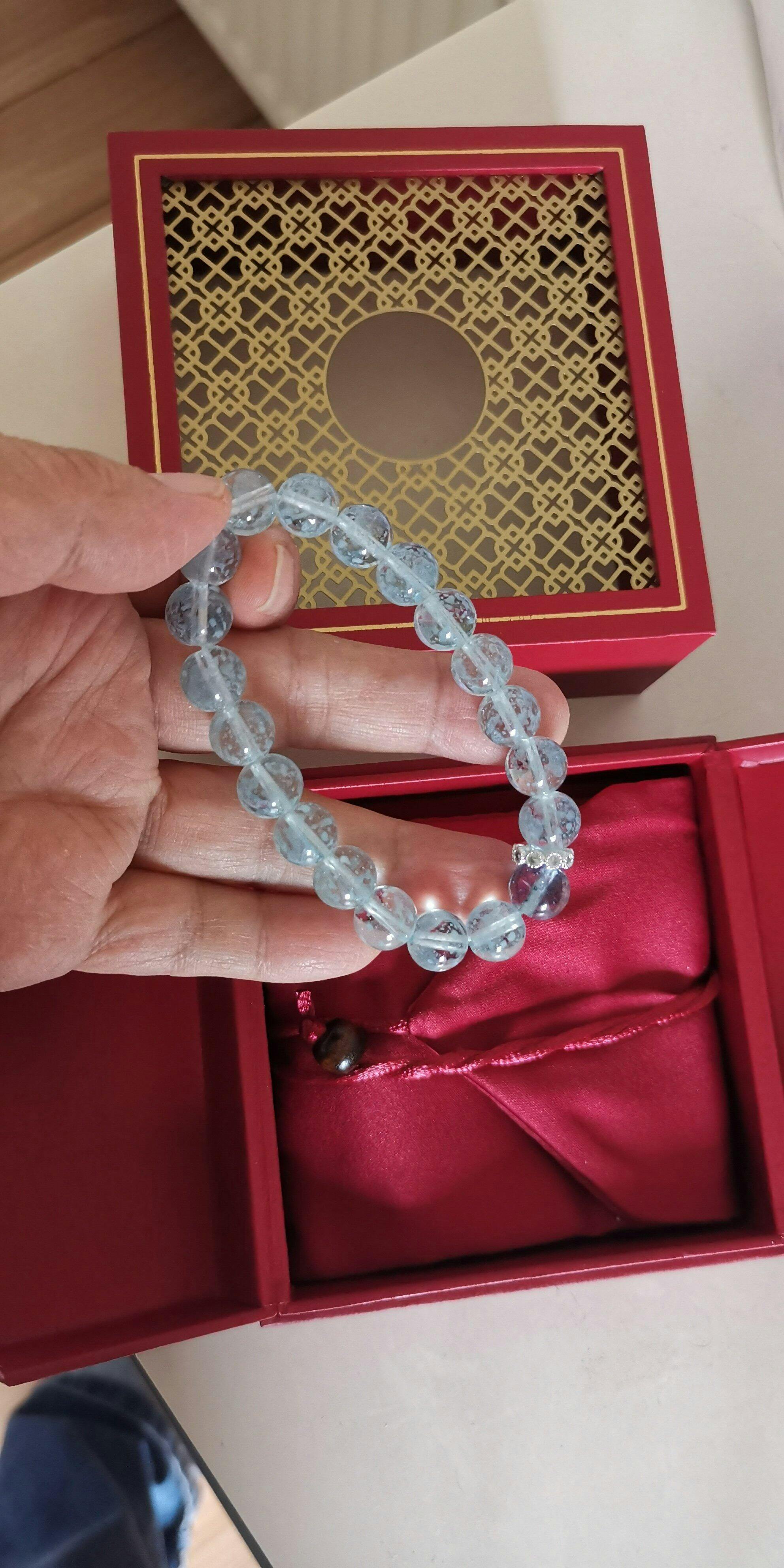 • Materials: Natural aquamarine, deep blue beryl, crystal spacer