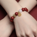 Steeped in tradition and grace, the Blessing Charm Bracelet unites the deep crimson energy of cinnabar with the calm purity of Hetian jade. The golden “Fortune” charm and antique-style bead evoke timeless blessings of peace, wealth, and spiritual protection. Each piece radiates balance — fire and earth, passion and serenity — carrying the quiet strength of sacred harmony.
