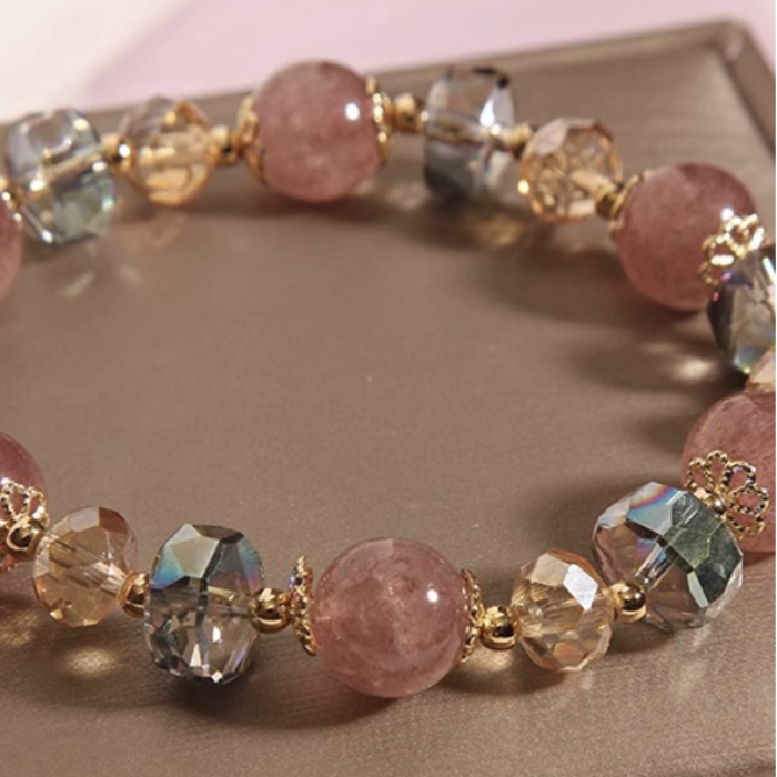 Blossom Charm Bracelet – Strawberry Quartz & Crystal Beads for Love