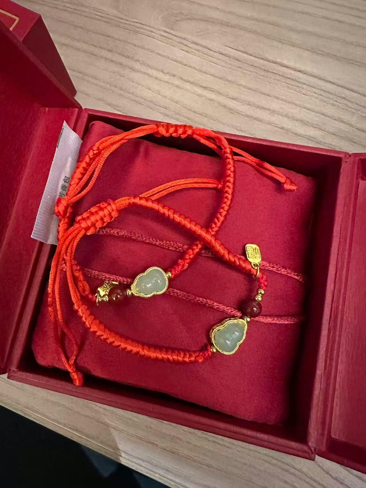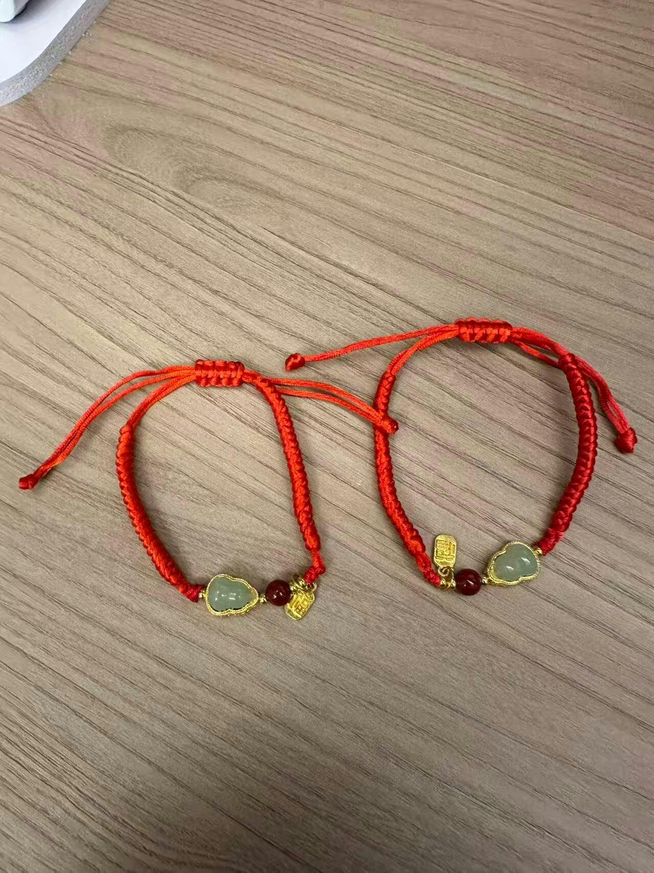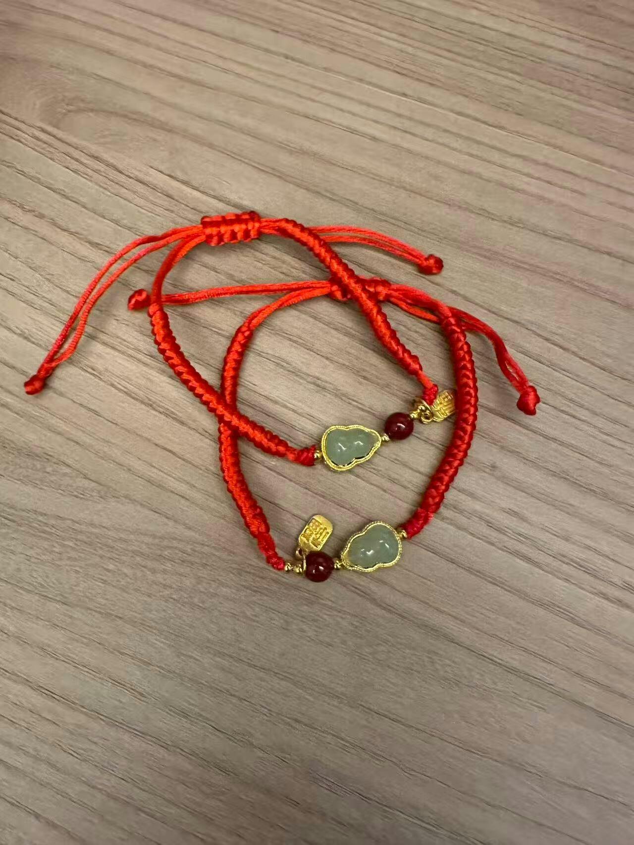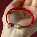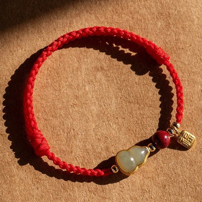 Cinnabar Fortune Gourd Red String Bracelet – Jade Inlay, Hand-Braided (2 Colors)