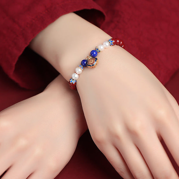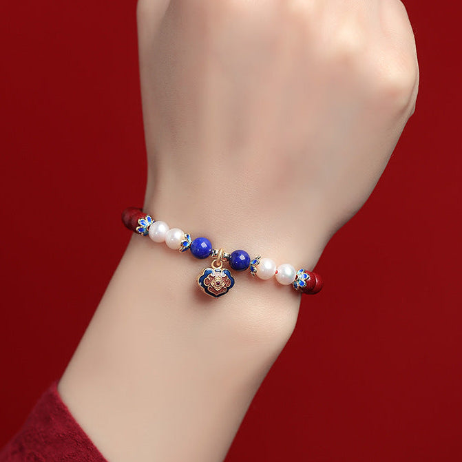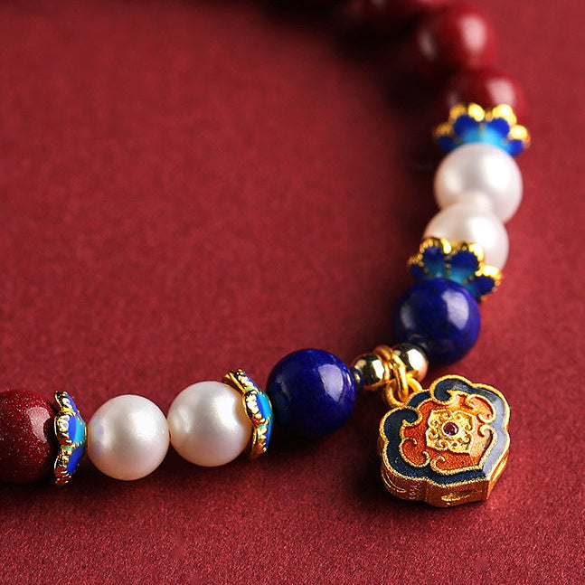 Cinnabar & Pearl Longevity Lock Bracelet – Blessing & Protection