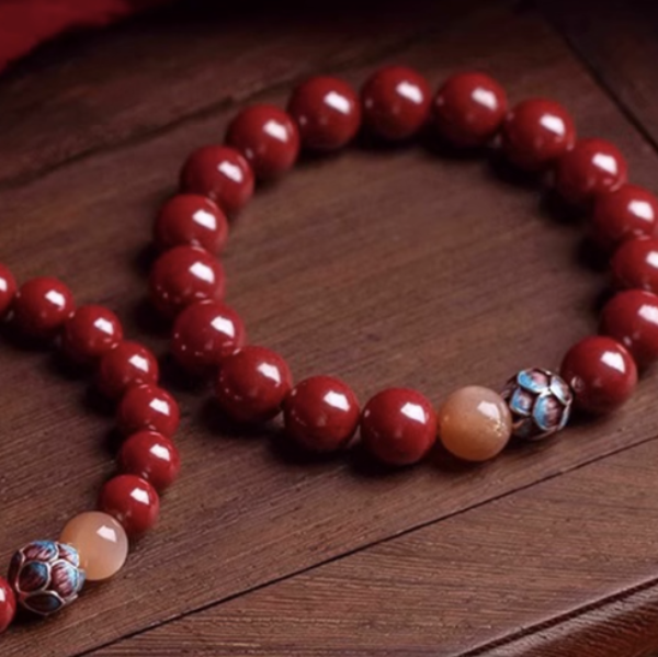 • Crafted from natural cinnabar (Zijin Sand) with 8mm beads