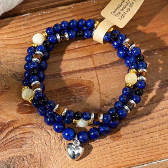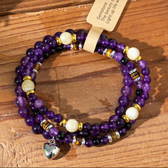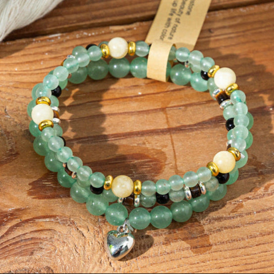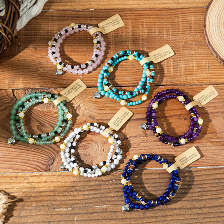Gemstone Double-Strand Bracelet Collection with Heart Charm – Women’s Balance & Elegance