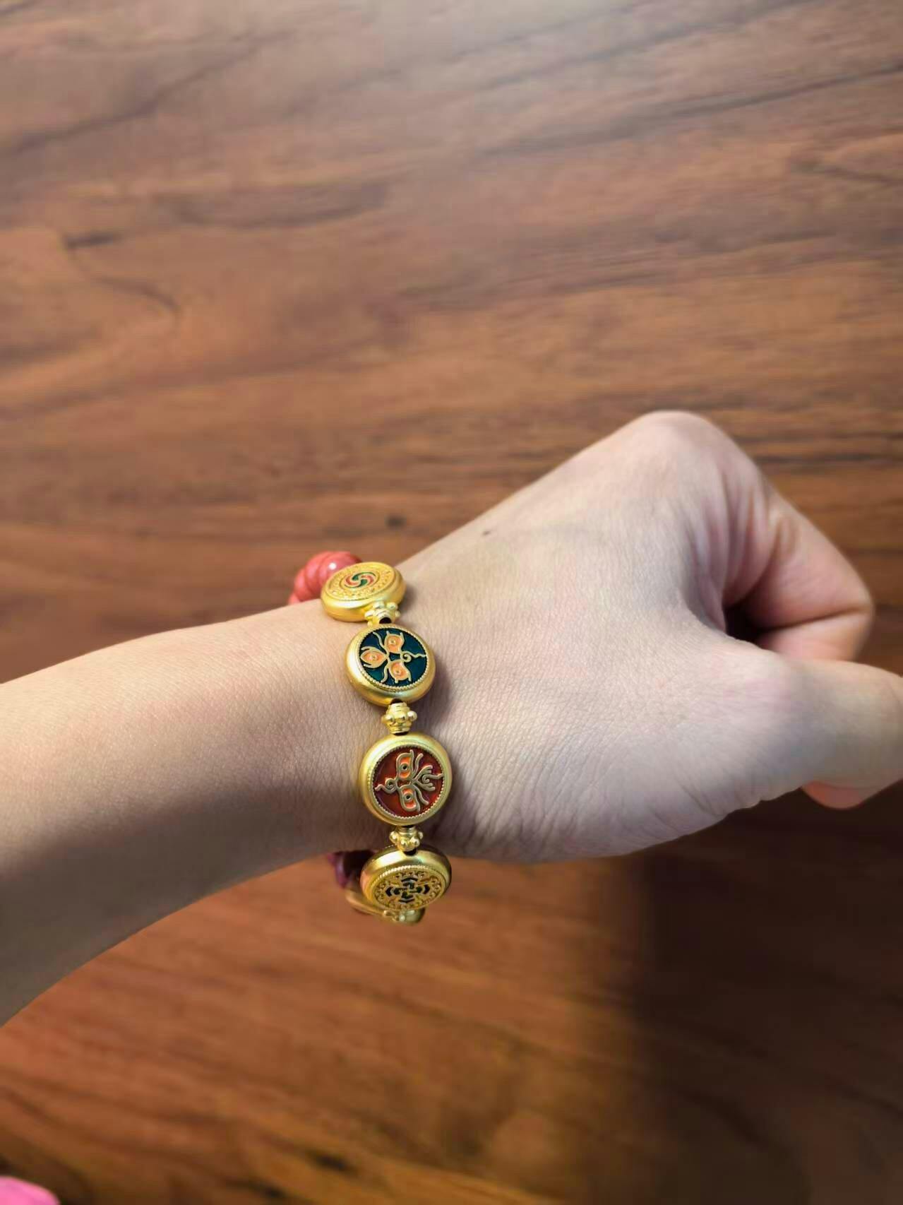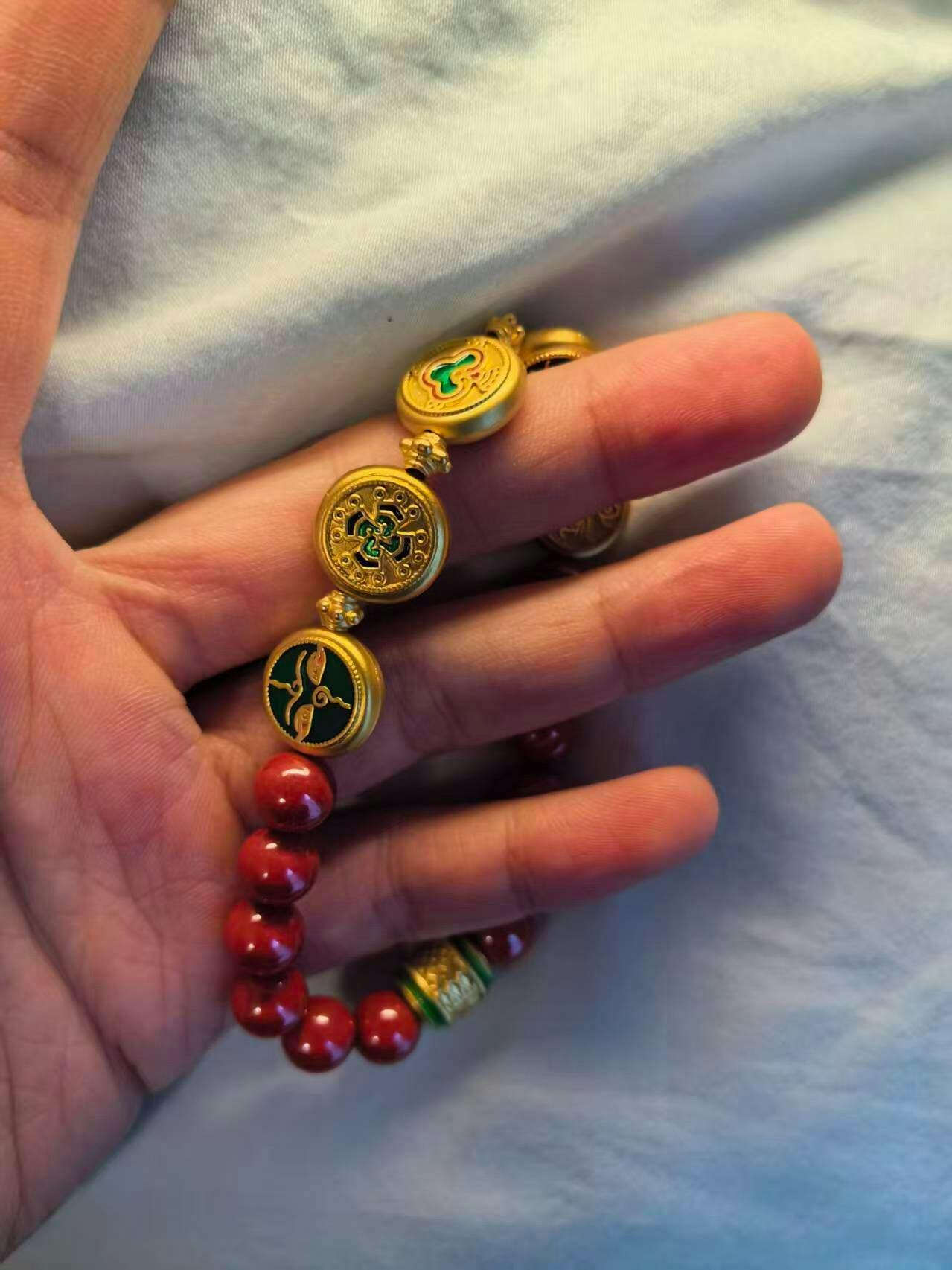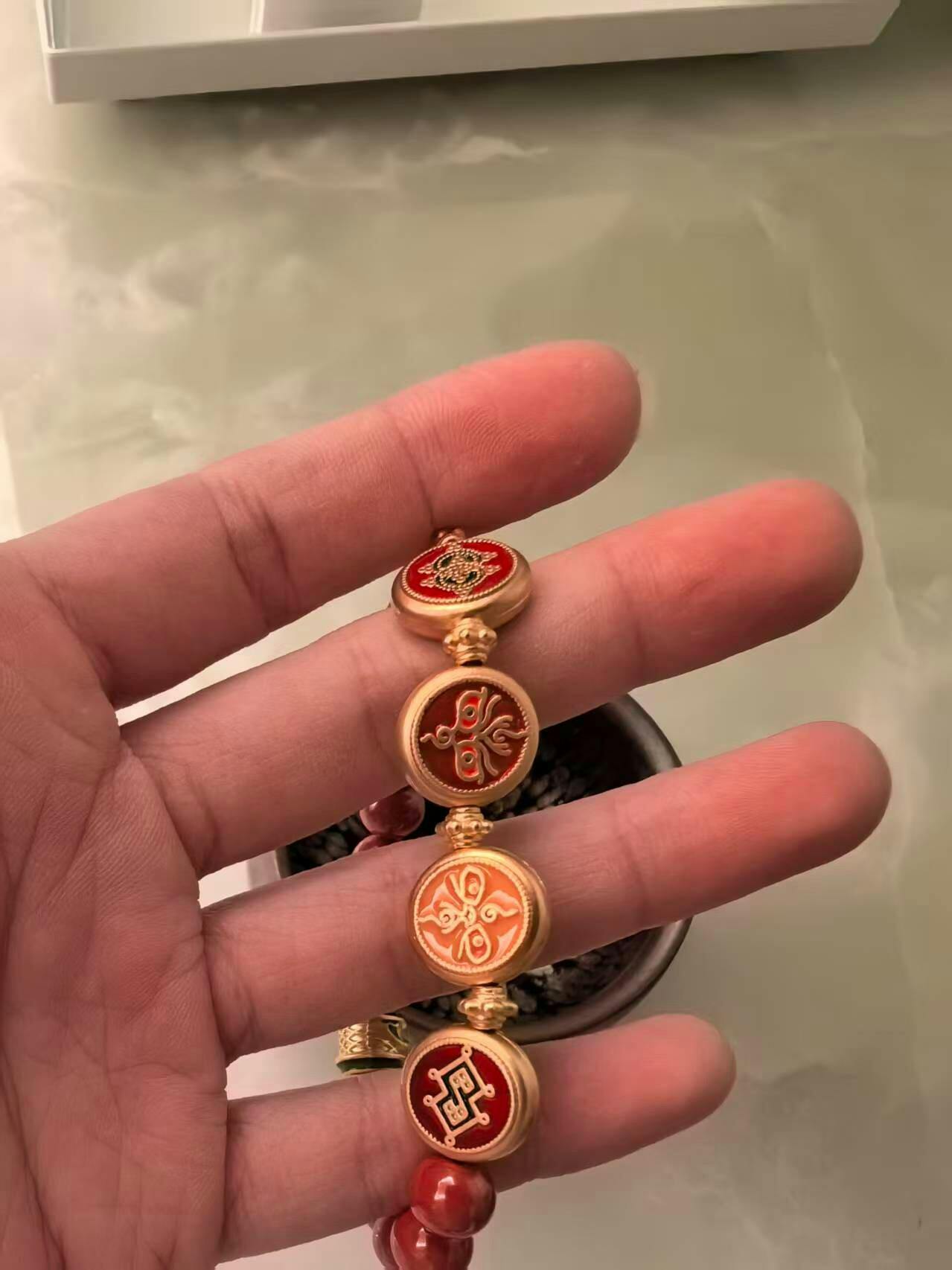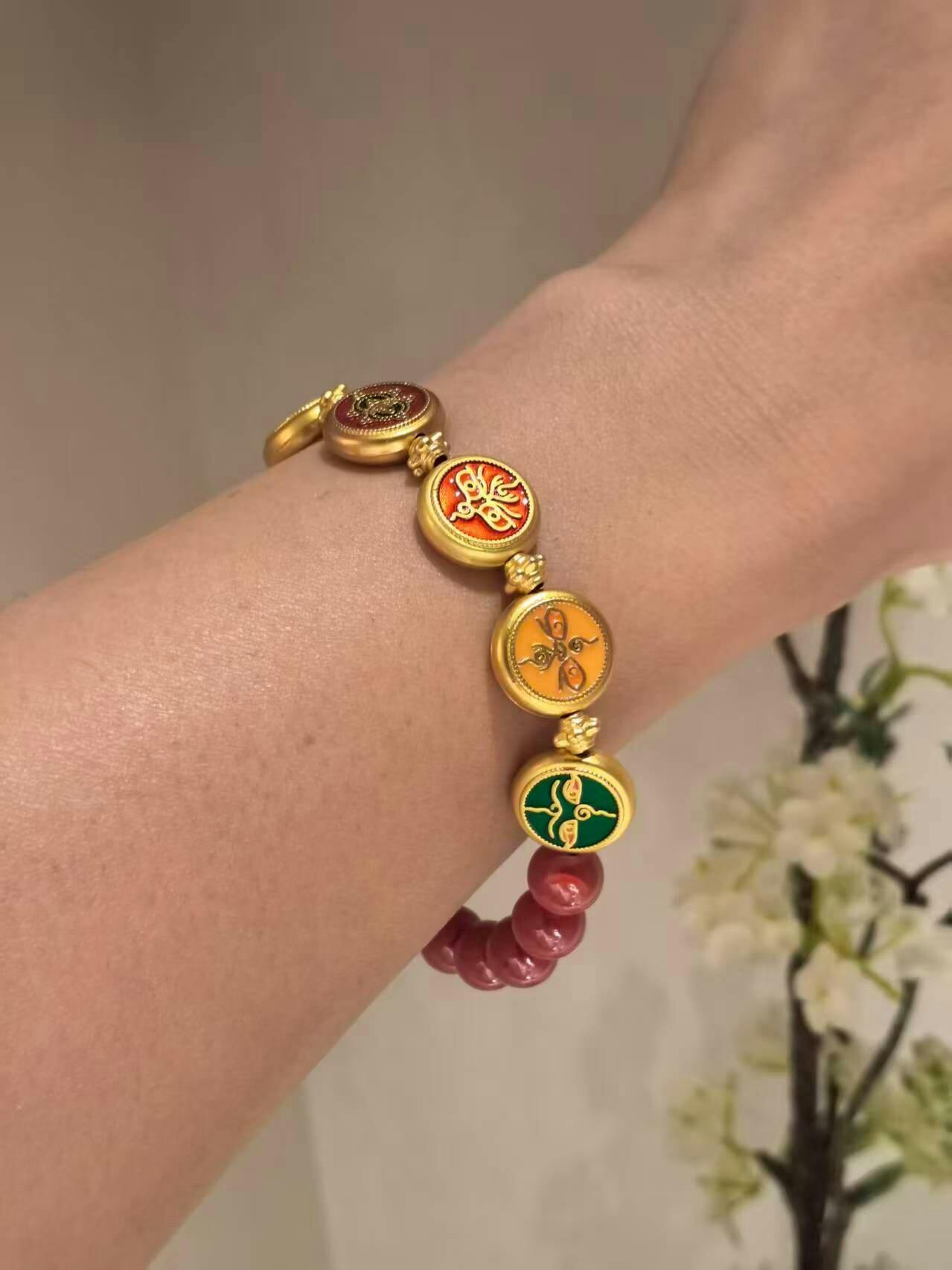 Five Elements Cinnabar Wealth Bracelet – Tibetan Prosperity Thangka Beads