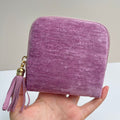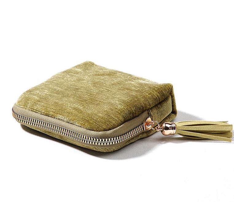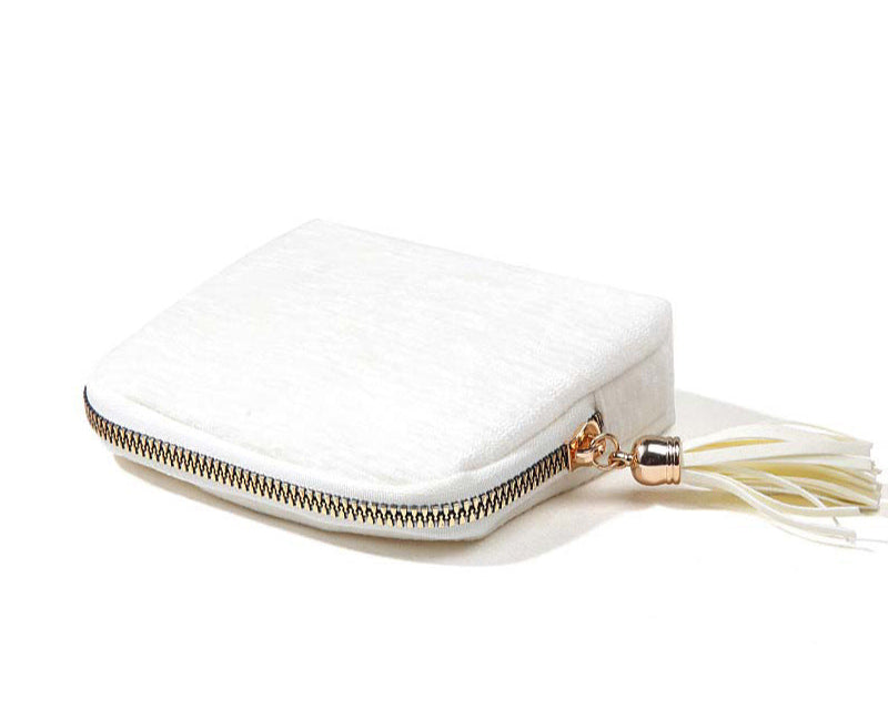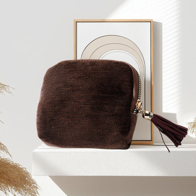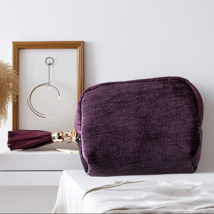 • Materials: premium velvet fabric, soft interior lining, metal zipper & tassel