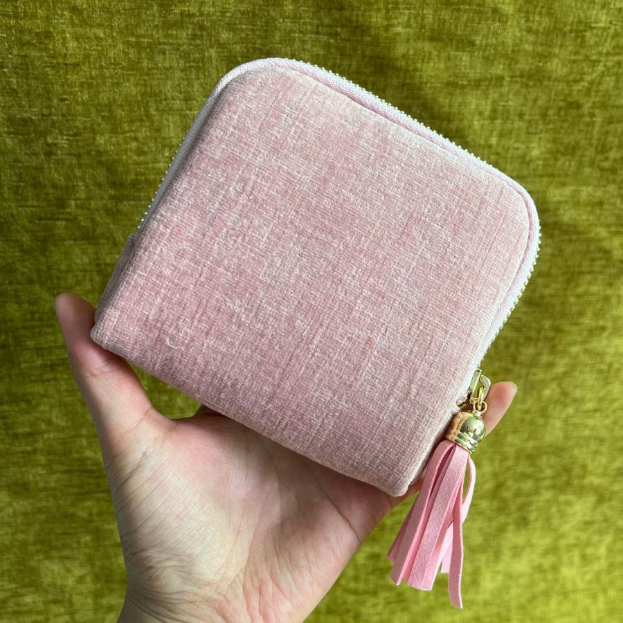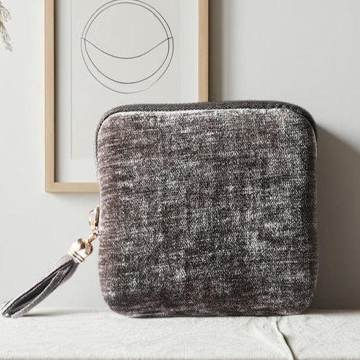 A refined velvet jewelry organizer crafted for travel and daily elegance. Its five-layer folding interior offers gentle compartments for rings, necklaces, earrings & bracelets—keeping each piece safely separated. The soft exterior catches the light with a subtle sheen, while the tassel zipper adds a touch of graceful movement. Available in 14 different colors, it blends understated luxury with mindful practicality.