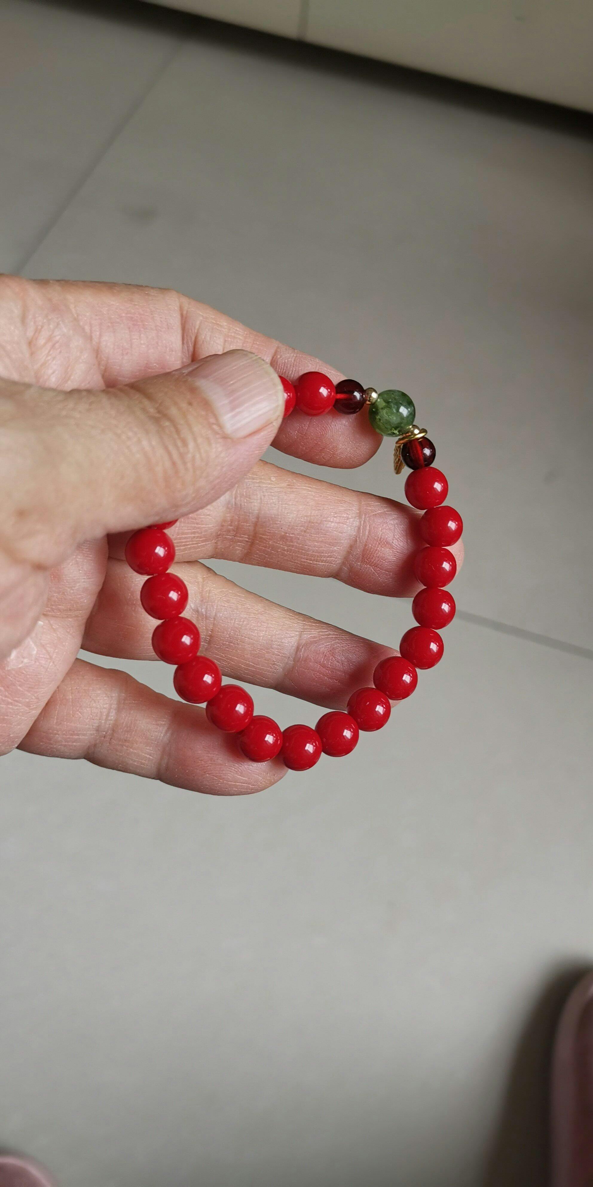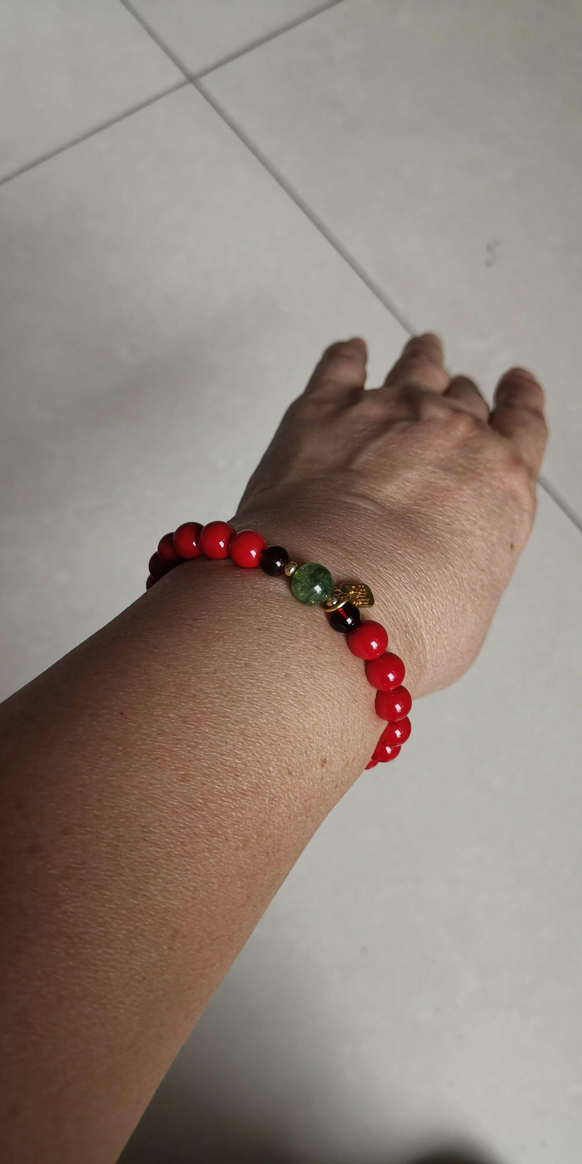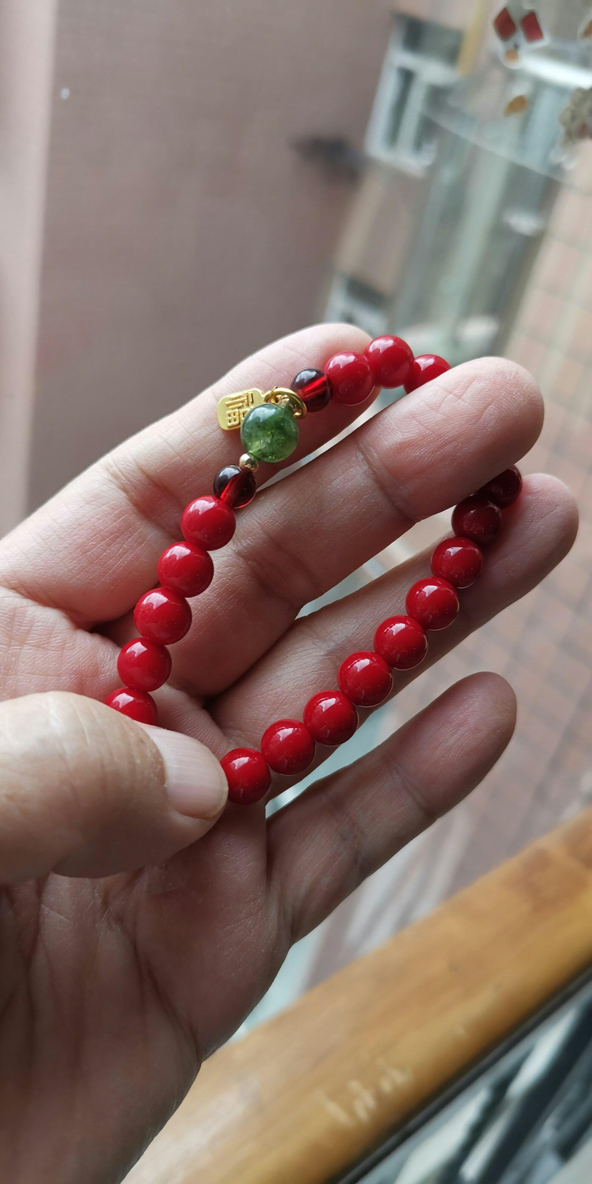 • Materials: Red agate, green jade, gold-tone alloy charm