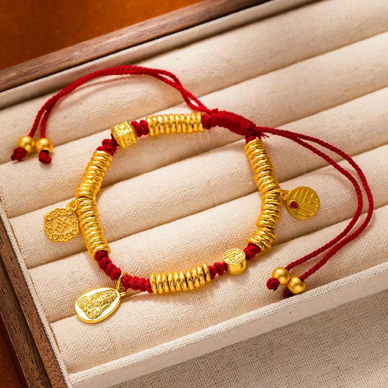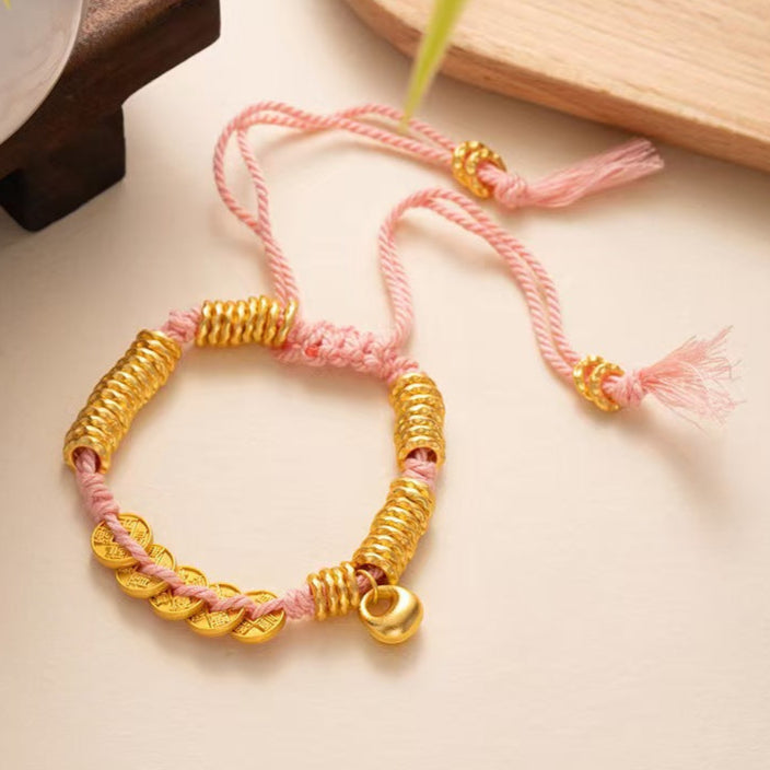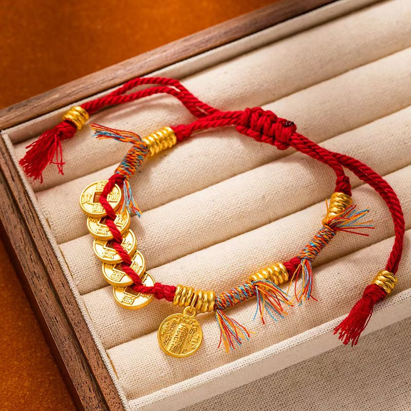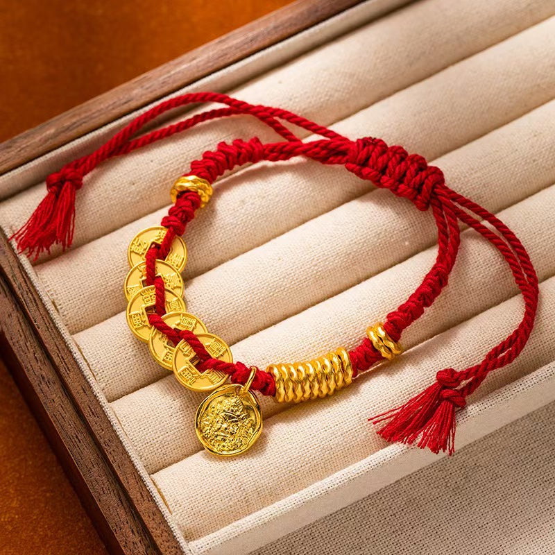 Fortune Coil Red String Bracelet – New Chinese Style, Caishen Coin Charm