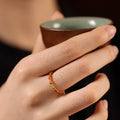 This women’s ring is crafted from olive wood beads carved in a bamboo-inspired form, symbolizing resilience, growth & upright character. A polished golden accent bead highlights the design, bringing a sense of warmth & prosperity to the piece. Lightweight and comfortable, the ring’s natural wood grain provides a grounded presence, making it a versatile talisman and everyday accessory that pairs tradition with modern simplicity.