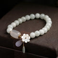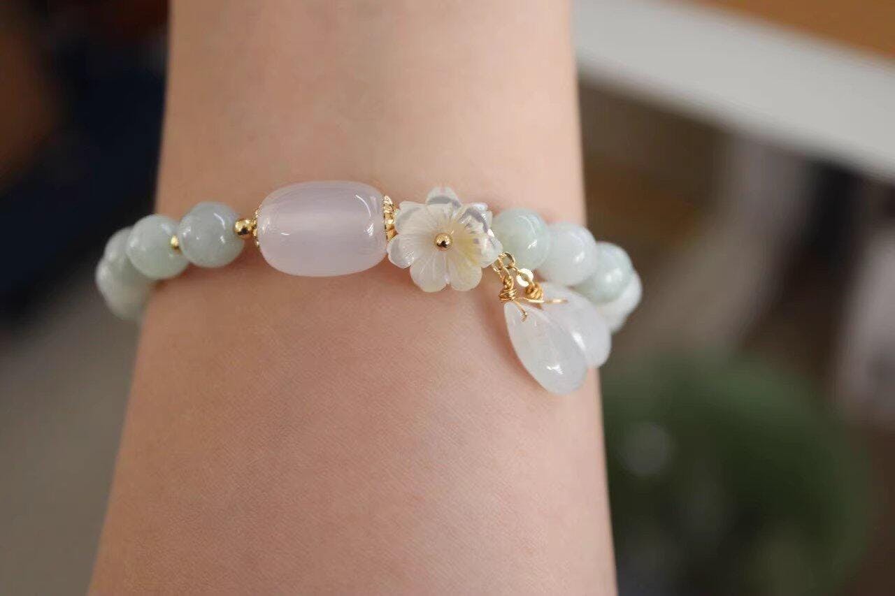 Jade Blossom Bracelet – Natural Jade with 14K Gold & Shell Flower Charm