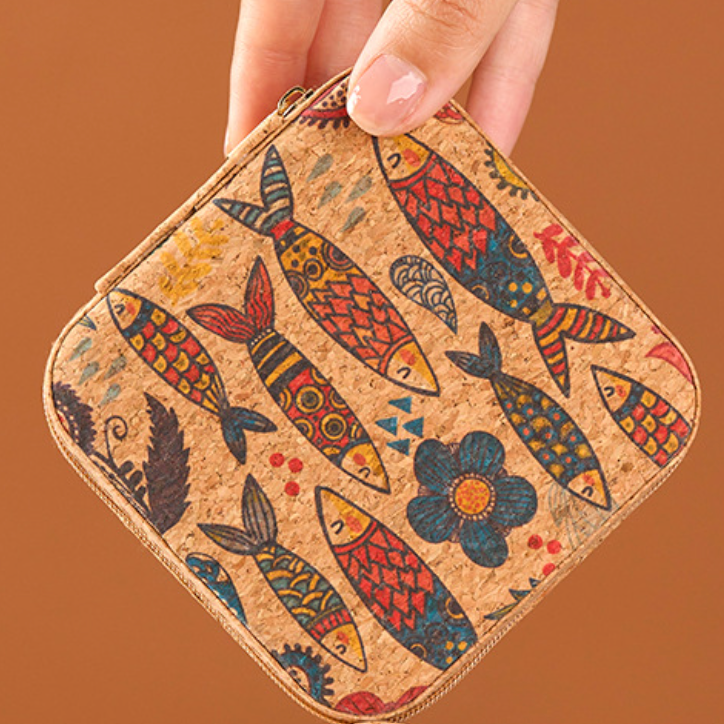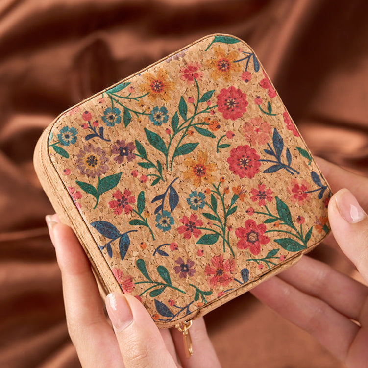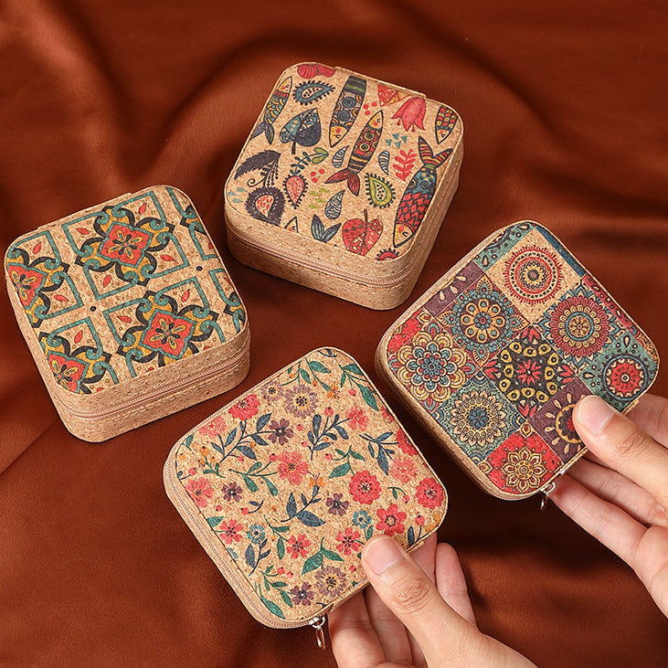 Bohemian Cork-Print Travel Jewelry Box (4 color types)