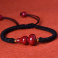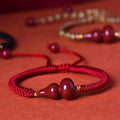 A classic red-string silhouette refined with a smooth gourd (hulu) centerpiece carved in sparkling purple goldstone. The rounded cord is tightly macramé-braided for comfort and finished with an easy sliding closure so you can fine-tune the fit. Choose wine red, bright red, or black to match your stack—an everyday talisman with a clean, modern profile.