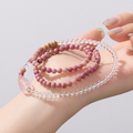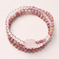 Rhodochrosite & Clear Quartz Double-Wrap Bracelet with Rose Quartz Pixiu – Love & Protection