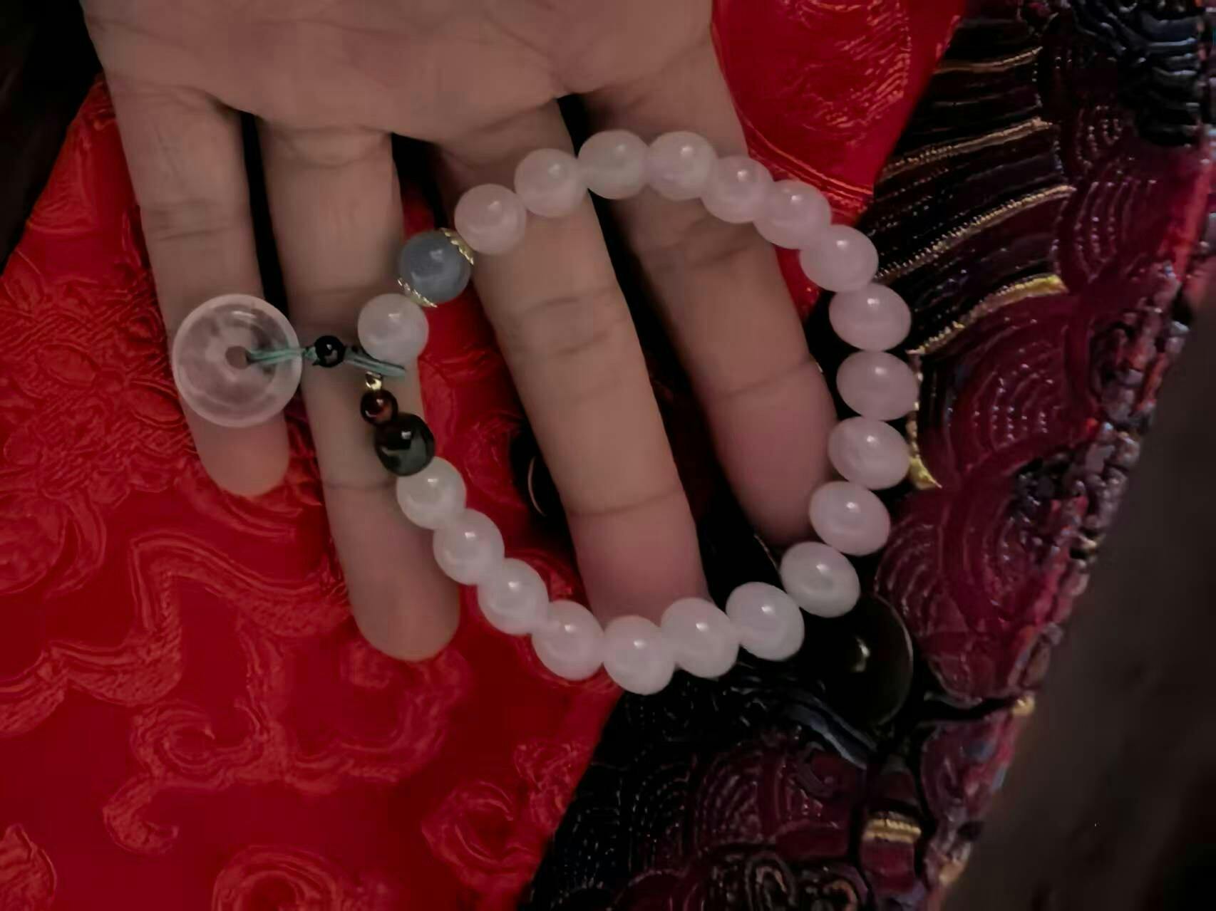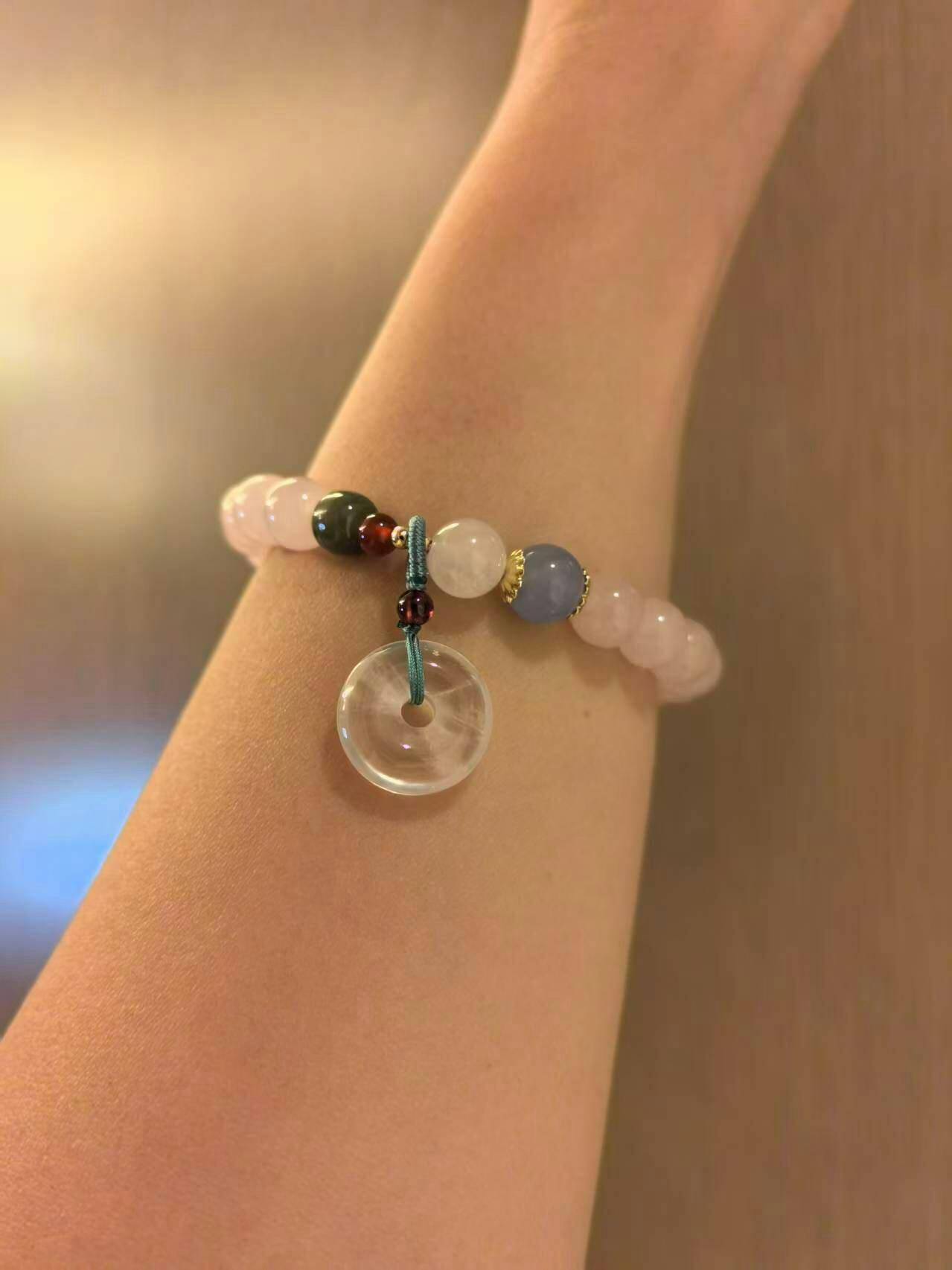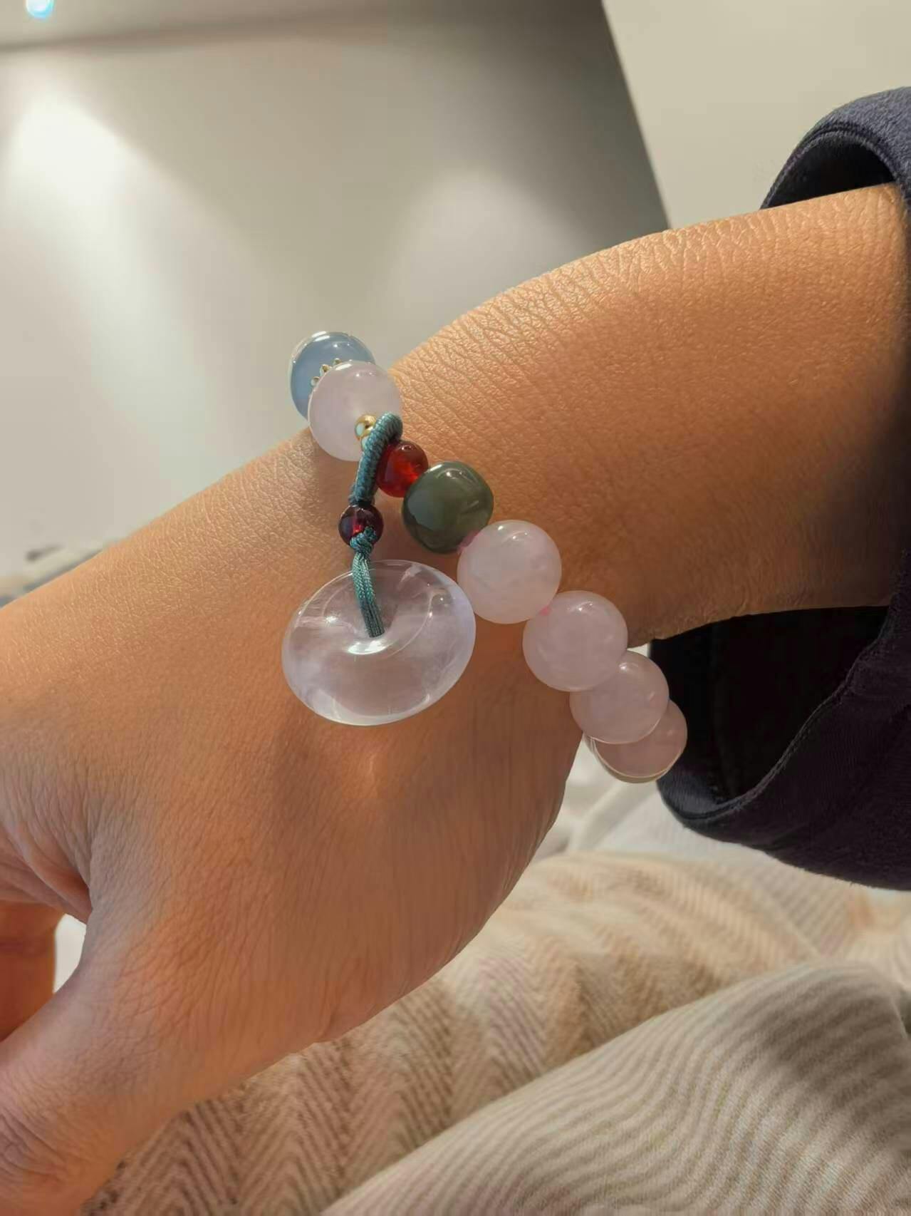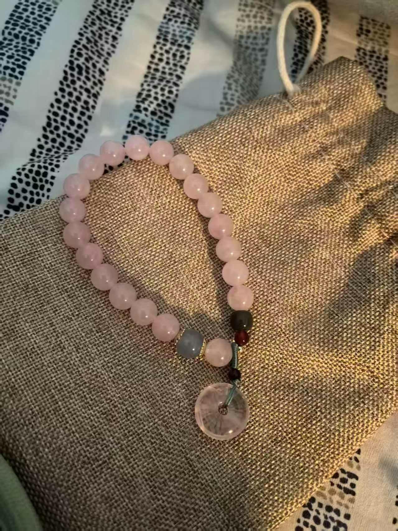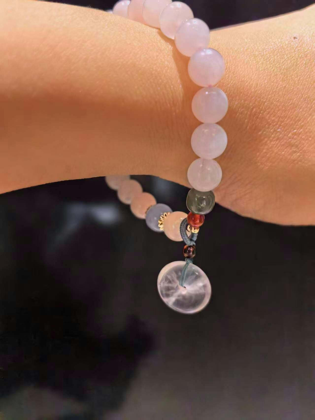 Rose Quartz Lucky Donut Charm Bracelet – Calming Energy & Good Fortune