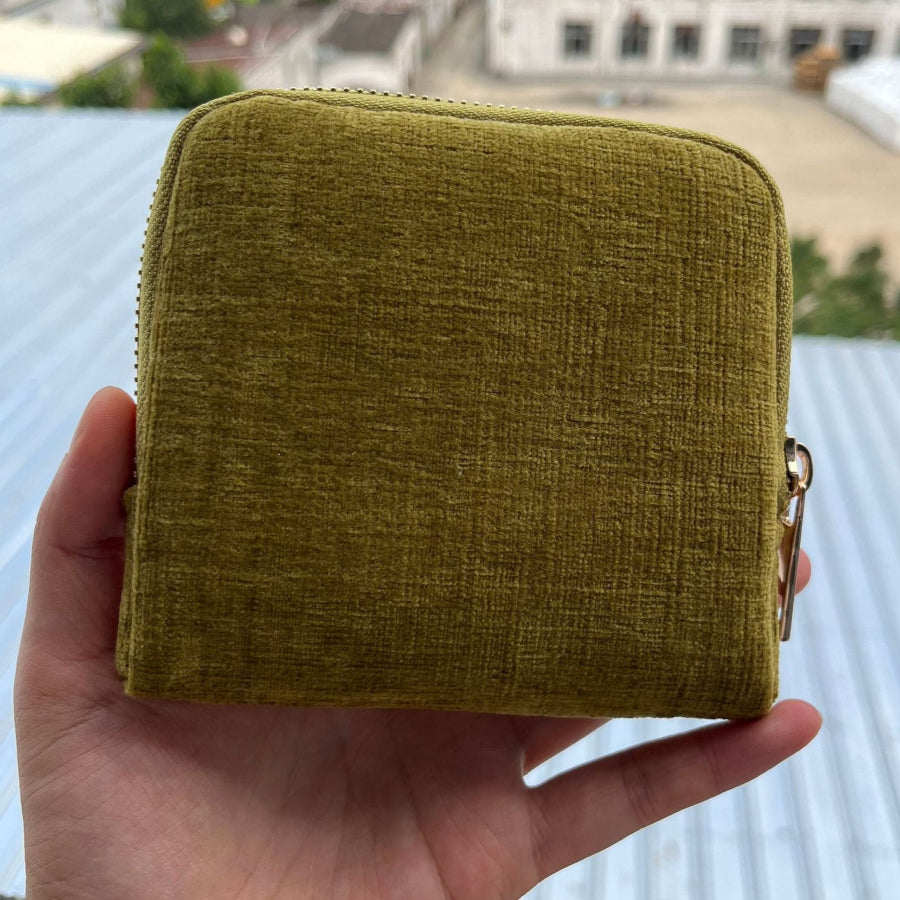 • Soft velvet exterior with smooth zipper & tassel detail