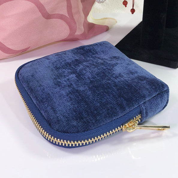This elegant travel jewelry organizer combines practicality with refined style. Crafted from soft velvet fabric and finished with a tassel zipper pull, it opens to reveal six inner compartments for neatly storing rings, bracelets, pendants & earrings. The compact square design keeps jewelry secure and tangle-free—ideal for travel or daily use. Available in multiple colors.