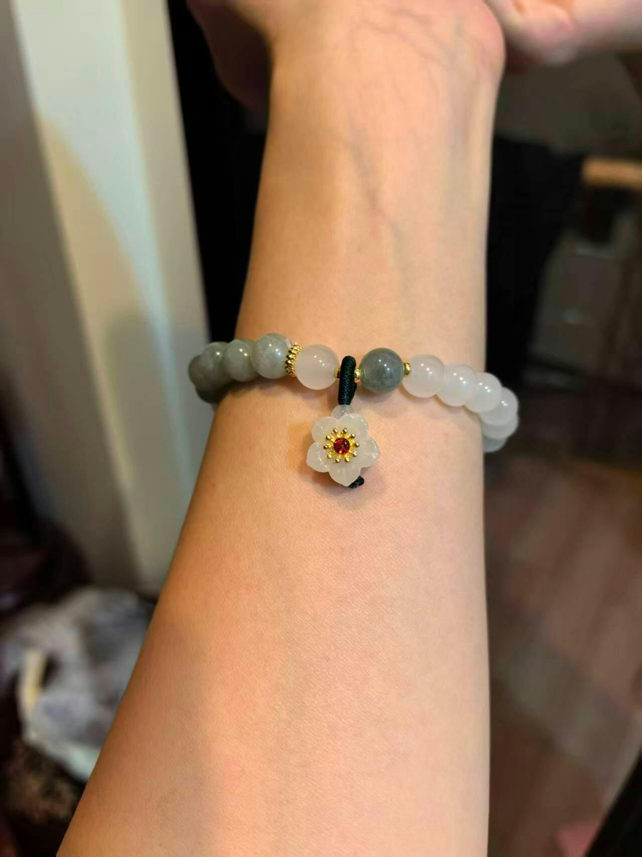 White Jade & Green Aventurine Bracelet with Plum Blossom Charm – Women’s Elegance & Harmony